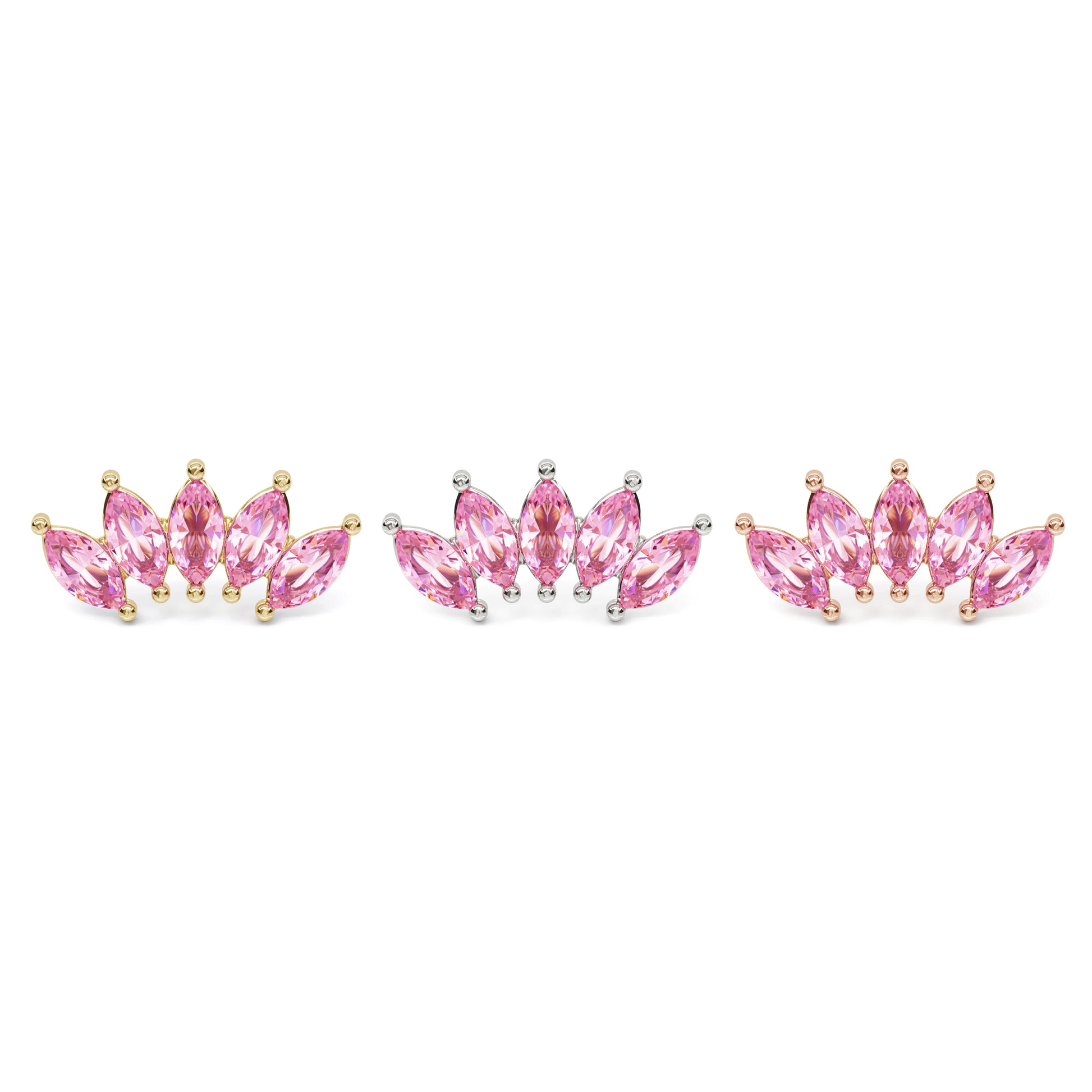 A 14k solid gold stud featuring five marquise pink tourmalines in a curved shape.