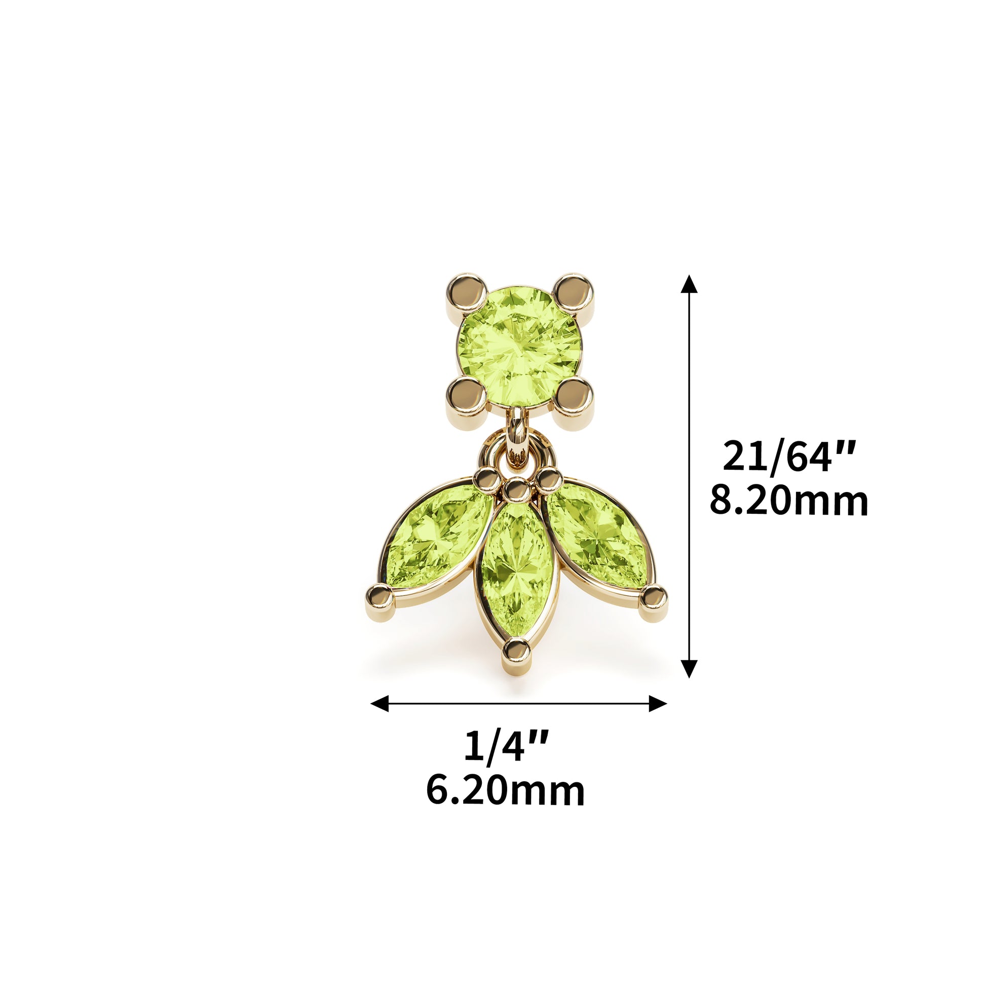 14K Gold Marquise Peridot Lotus Dangle Threadless End
