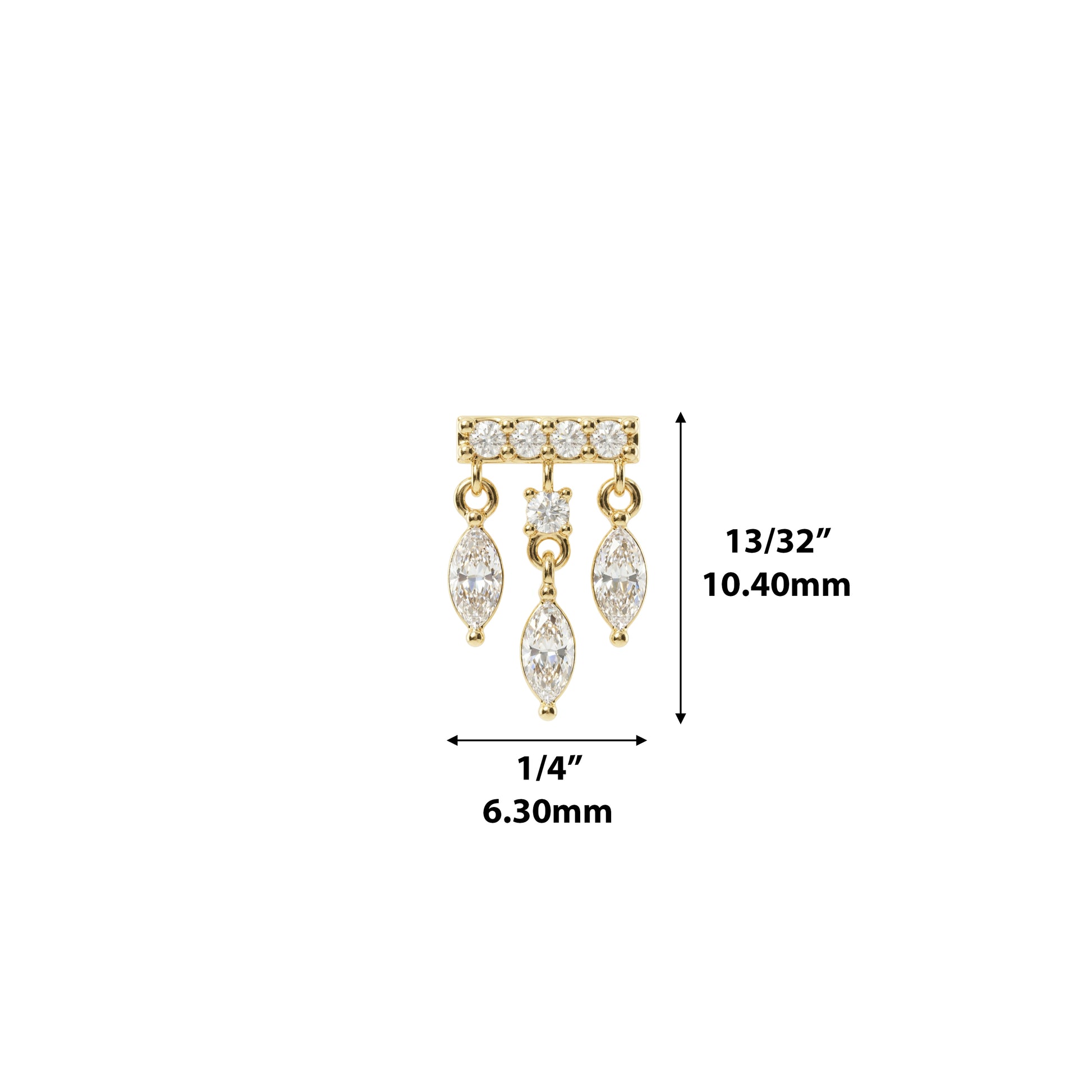 A sleek vertical bar stud set with round stones and finished with cascading marquise drops for added movement.